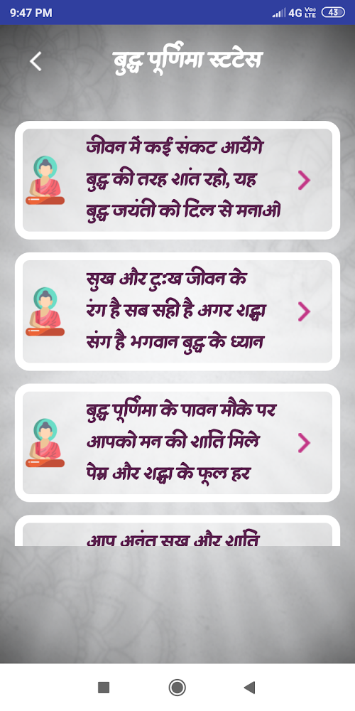 This version of बुद्ध पूर्णिमा ग्रीटिंग विशेस Android App comes with one universal variant which will work on all the Android devices.