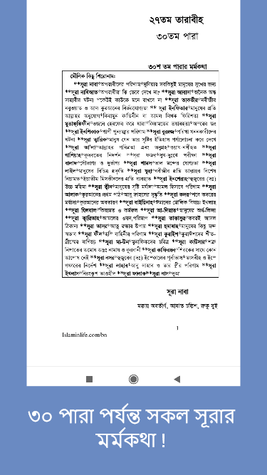 al quraner bangla mormobani অ্যাপটি মূলত প্রতিদিনের তারাবীহ নামাজে পবিত্র কোরআন শরীফ হতে যে অংশ তিলাওয়াত করা হয়, সেই অংশের মর্মবাণী বা সারাংশ নিয়ে একটি পিডিএফ অ্যাপ।