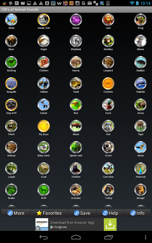 100+ Animal Sounds: Amazing Buttons & Instant Fun Galore has an extensive collection containing over 100 PREMIUM QUALITY SOUNDS!! With such a wide variety of buttons available, this app provides a great source of entertainment and education to kids and adults to enjoy!