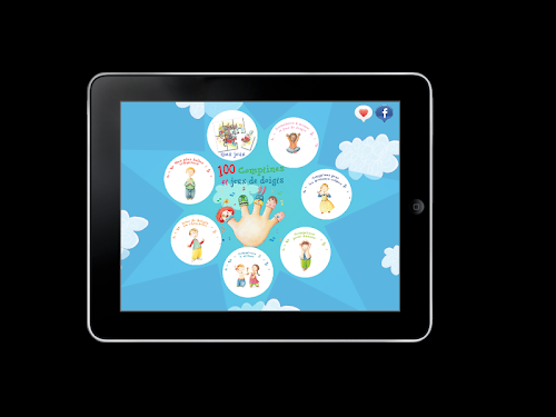 "100 comptines et jeux de doigts" propose 100 comptines, chansons et jeux de doigts illustrés, des vidéos et 5 jeux originaux interactifs sur le thème des jeux de doigts pour les enfants de 2 à 6 ans : labyrinthes, puzzles, jeux d'écriture, de logique et de motricité.