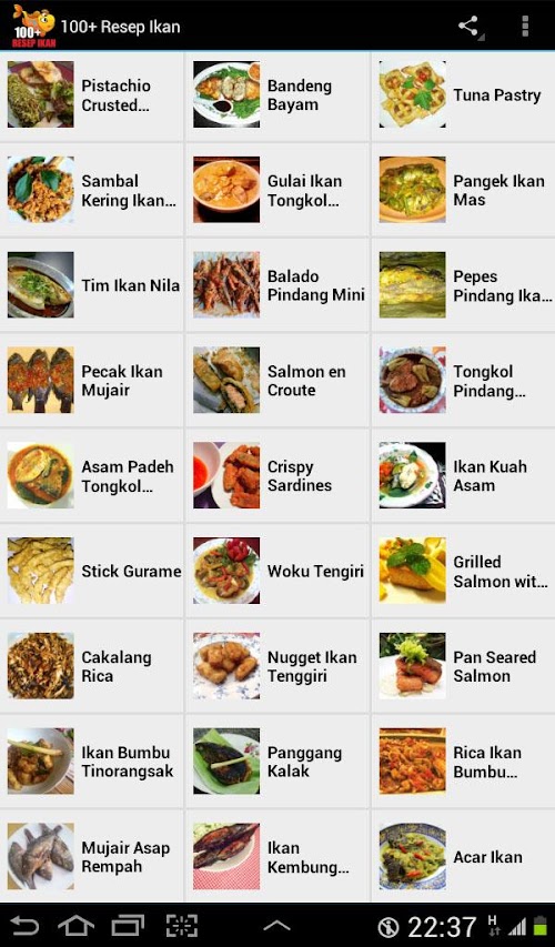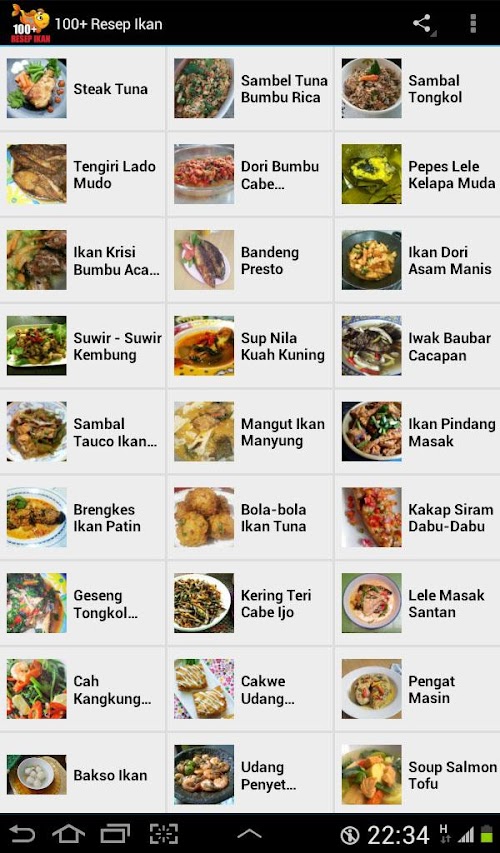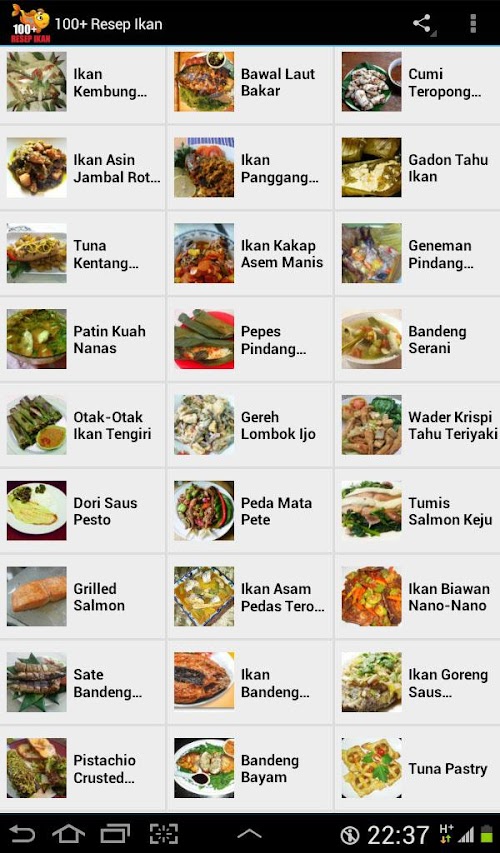 - Acar IkanThis application contains 100+ variations of recipes made from fish. Various kinds of fish and how to process them into a delicious meal here. This apilkasi fit for the newly learning and who are experts, because there are levels of recipes ranging from the simple to the rather complicated. But do not worry, here is explained in detail each recipe ingredient, seasoning, and how to process them. So that when all the results would be followed exactly satisfying.