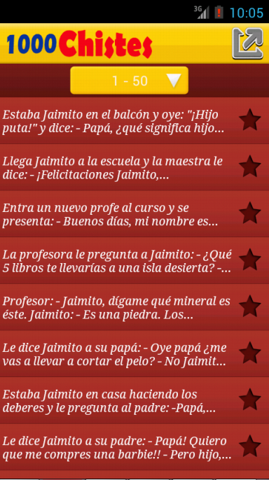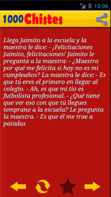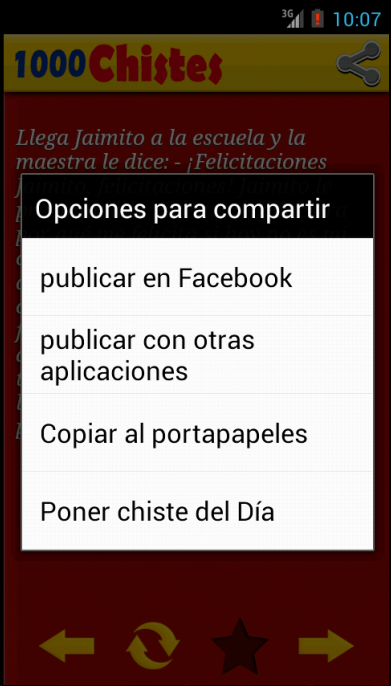 chiste del día,..Compartir chistes a través de SMS, correo electrónico, Twitter, Facebook, WhatsApp o cualquier otra aplicación instalada en el teléfono con tus amigos.In 1000Chistes you find the best jokes of all subjects ... from: