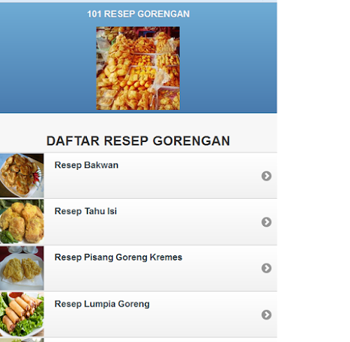 Selamat datang di aplikasi 101 resep gorengan, aplikasi ini membantu anda untuk belajar memasak.