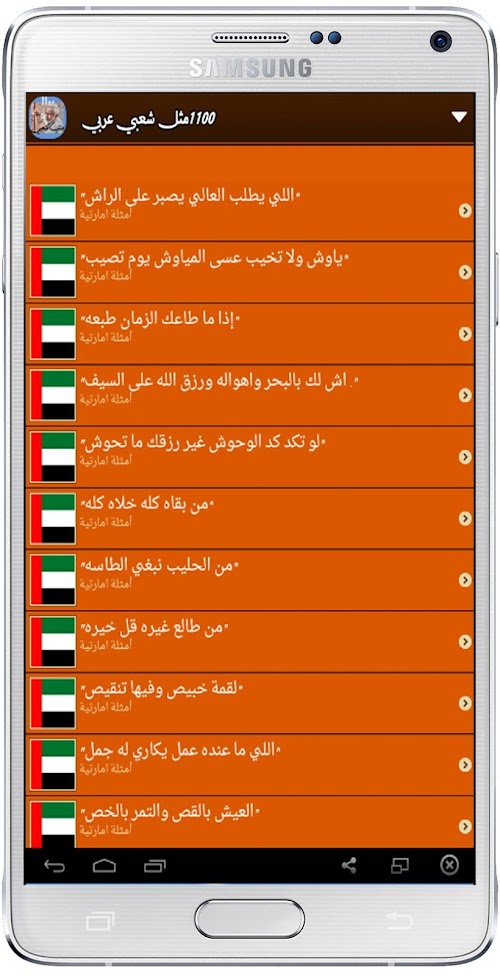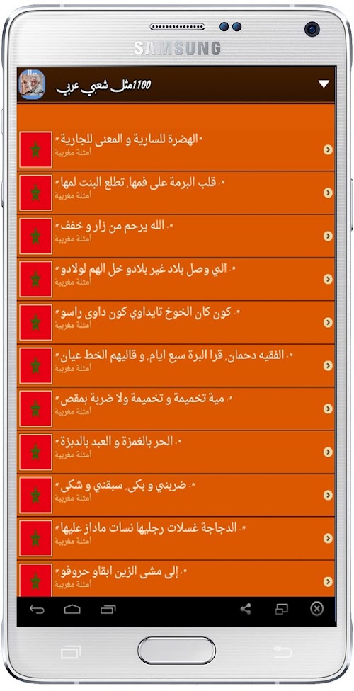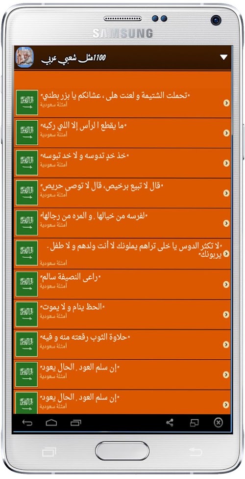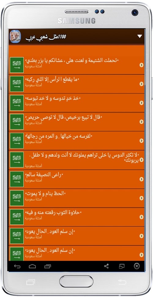 1100, such as the application of the coolest popular Arabic Old includes various examples selected manually from various Arab countries .ala example in Omthbh Tthdt about love and friendship and enmity and fraternity, Mokhodh popular Moroccan and Algerian-Tunisian and examples Calendar also Okhaddna popular examples of Egypt and Iraq and Alardan, Tunisia, and do not forget the old sayings of Qatar and the United Arab Emirates and Saudi Arabia. And do not forget the old folk examples of Arabic and also added the likes of popularity due to its Mauritanian these parables of judgment and Meanings