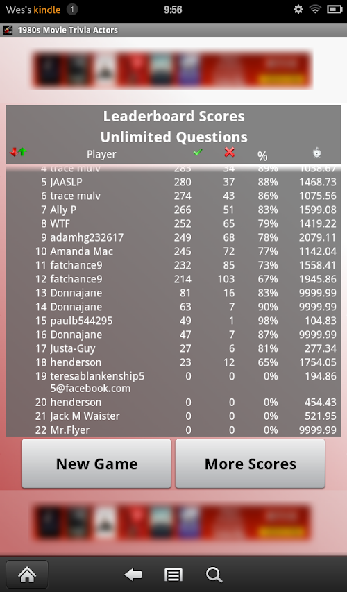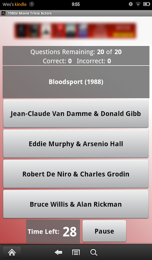 This movie trivia game will challenge you to match the lead actors and actresses to more than 300 movies from the 1980s. Actors include Johnny Depp, Harrison Ford, Mel Gibson, Eddie Murphy, Robert De Niro, Tom Cruise, Woody Allen, Nicolas Cage, Sean Connery, Elisabeth Shue, John Cusack, Kevin Costner, etc.