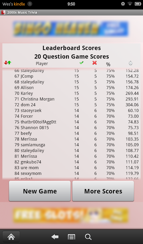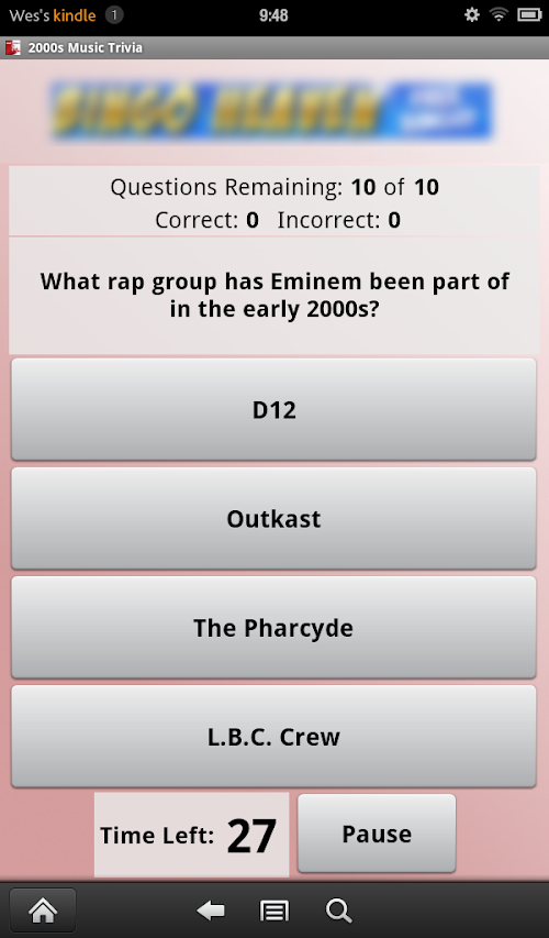 This 2000s music trivia game will quiz your knowledge of everything the first decade of the millennium had to offer in music... Britney Spears, Eminem, Madonna, Green Day, Pink, Dido, Beyonce, Coldplay, Kelly Clarkson, Justin Timberlake, Maroon 5, Gwen Stefani, Evanescence, Nickelback, iPod, and American Idol.