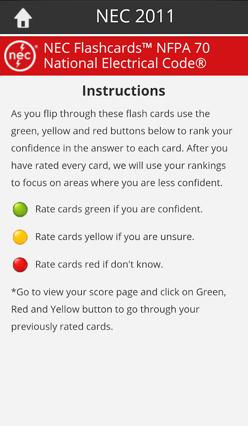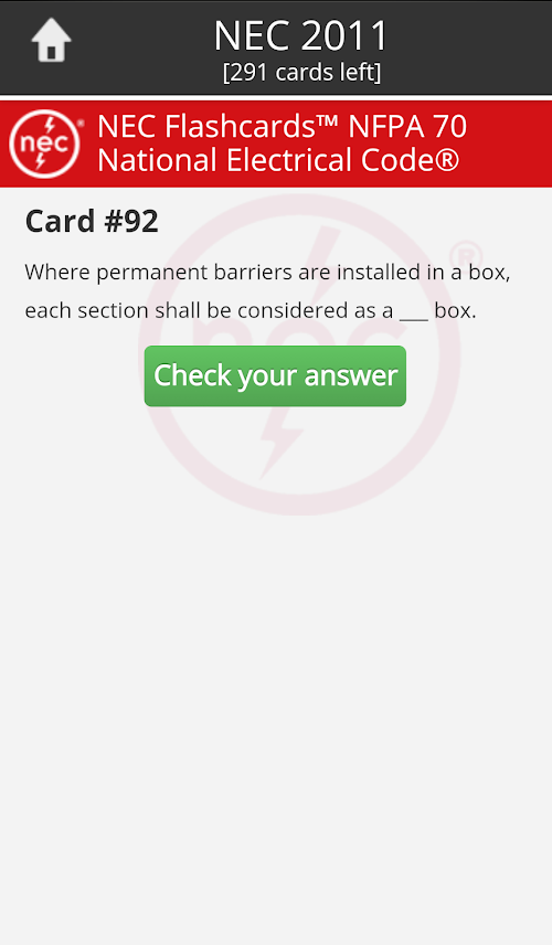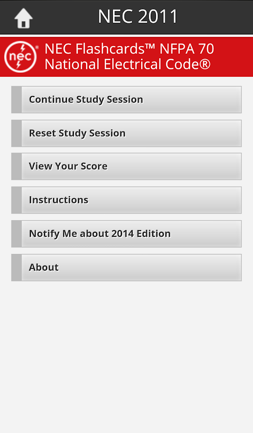 Learn and check your knowledge of code information easily with the only NEC study tool offered by the National Electrical Code® publisher, NFPA®. Flexible, easy-to-use, and fully optimized for any Android tablet or smart phone.