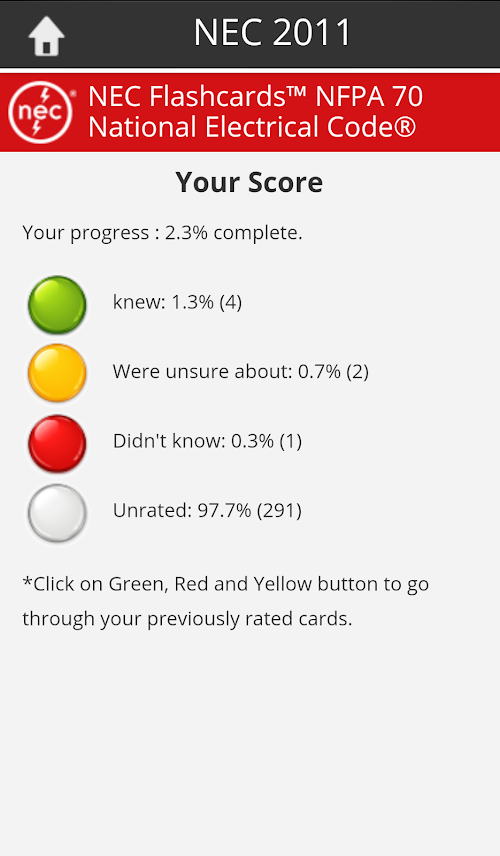 This version of 2011 NEC Flashcards Android App comes with one universal variant which will work on all the Android devices.