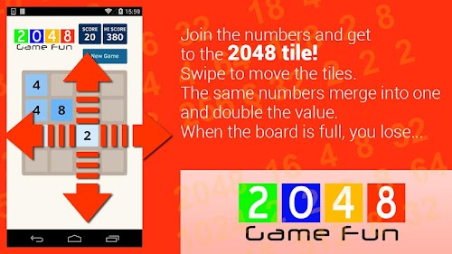 Merge the numbered tiles with the same value and get to the 2048 tile!