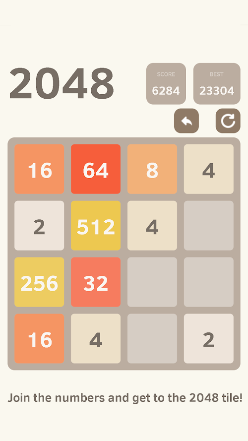 上下左右移動瓷磚,當兩個相同數字的方塊相碰時會合併成一個數字。