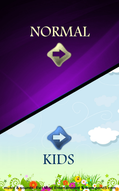 - 2 game modes to different players age (silent animation in normal mode, colored background in the "children".