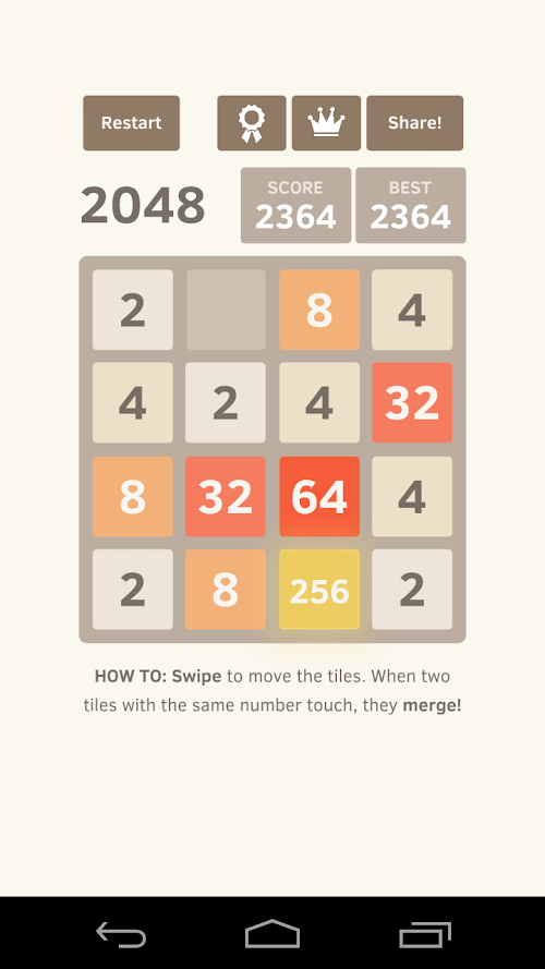 This version of 2048 Android Game comes with one universal variant which will work on all the Android devices.