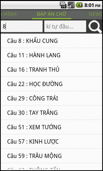 - Support search by: NUMBER OF LETTERS, FIRST CHARACTER.