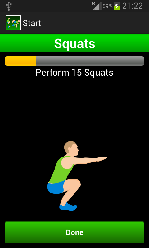 This app helps you to exercise daily. The app contains the three most common exercises everyone can do. The workout routine contains push-ups, crunches and squats. Doing the workout will make you feel stronger, healthier, improve energy and control weight. Exercise benefits every part of the body. You don't need any equipment for the workouts. Do the three exercises daily to get fit, abs and muscles. Total body fitness workout. Full complete body muscle training with log.