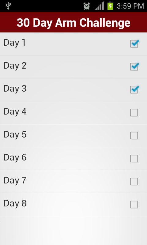 Just install this app and follow the routine daily. Our reminder will automatically remind you to workout daily. Rest days will help your muscles recover. Tick off the days you have completed to keep track of your challenge progress. Don't cheat! It's as simple as that.