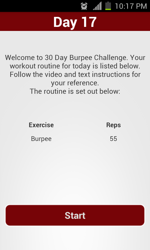 This version of 30 Day Burpee Challenge Android App comes with one universal variant which will work on all the Android devices.