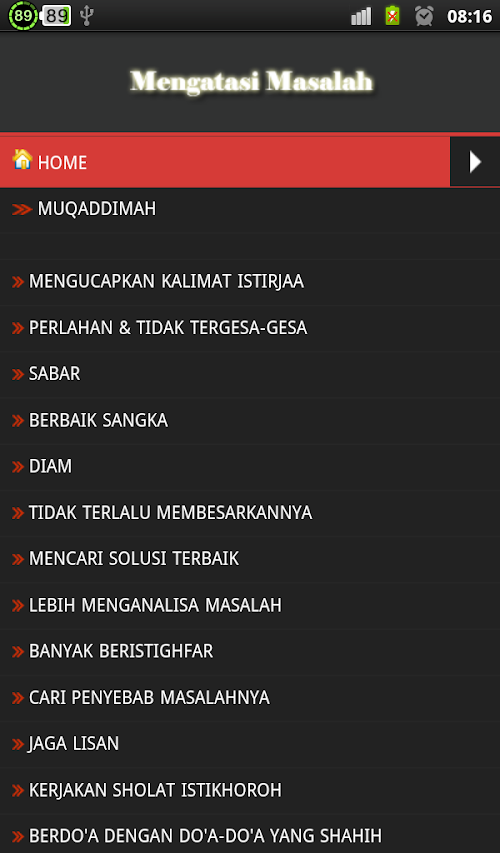 Aplikasi ini berisi 33 tips gimana caranya untuk menyelesaikan masalah dengan cara yang di syariatkan oleh Islam.