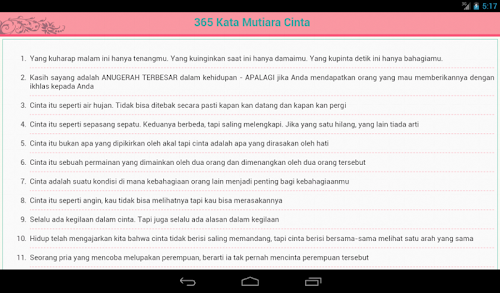 Download juga aplikasi kami yang lain: 365 Kata Mutiara Islam dan 365 Rayuan Gombal