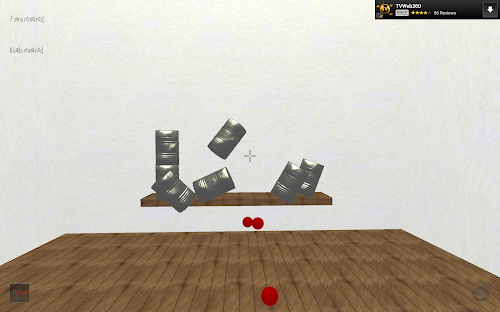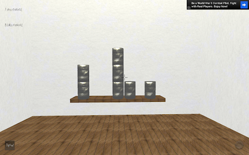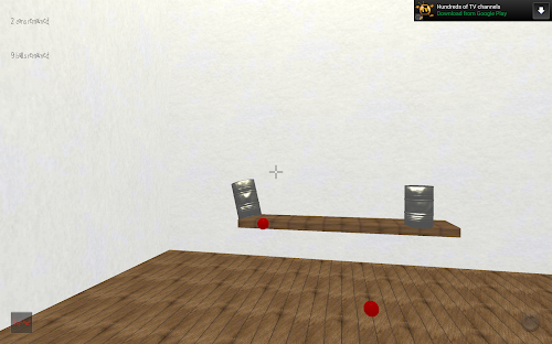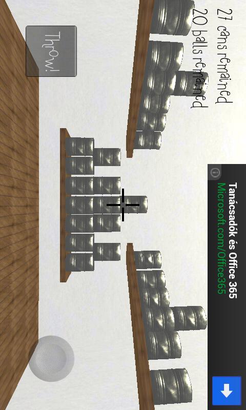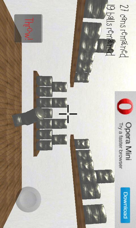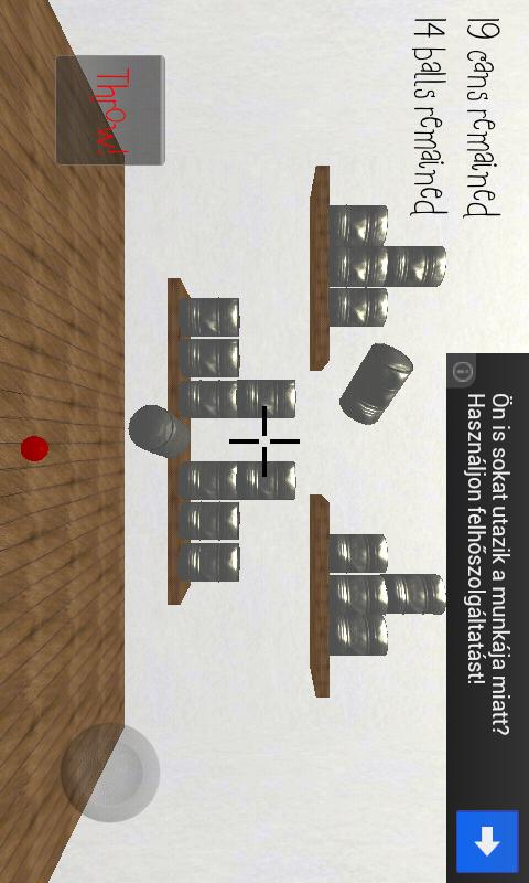 You have to shoot down all cans to gain access to the next level. Use the joystick on the right side to turn the camera. Click the throw button on the left to shoot a ball.