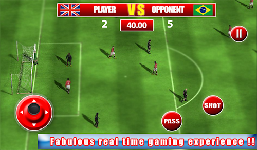 with realistic and high quality 3d graphics you will enjoy each moment of the game-play. download this game and be a part of 2014 champion league. score higher and defeat all energetic teams, show your achievements to your football family and friends. stay in the brazil stadium boundary for a longer time to enjoy & have wonderful gameplay experience of soccer 14 game.