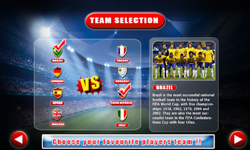 >> get ready for the quarter finals and semi-final upcoming hot brazil matches that rejoice the craze of football entertainment. choose your team and start with your talented genius tricky players in world cup 14 the real soccer superstars. keep blocking like a big barrier with zero chance of possibilities.