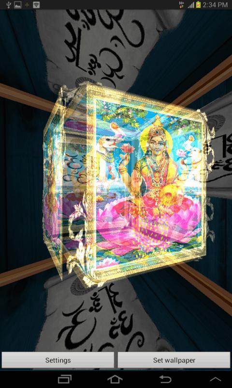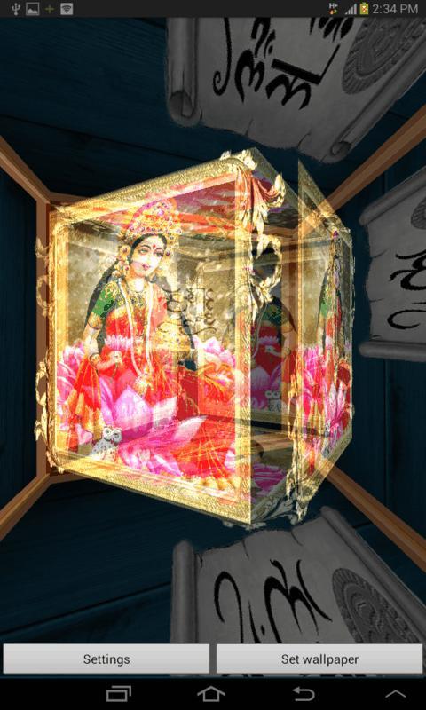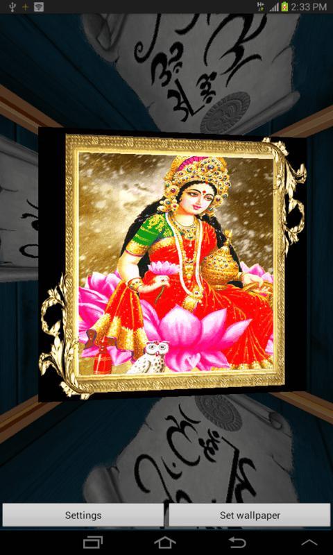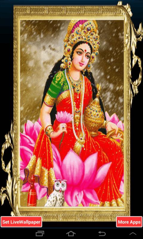 Personalize your mobile with Spectacular Divinity of Hindu Gods. Through this live wallpaper, get a beautiful sparkling and shining image of Goddess Laskhmi. Enjoy 3D animated Live wallpaper for the android device for Lakshmi. It is a must have live wallpaper who believes in the power of Gods. Get devotional through this live wallpaper.