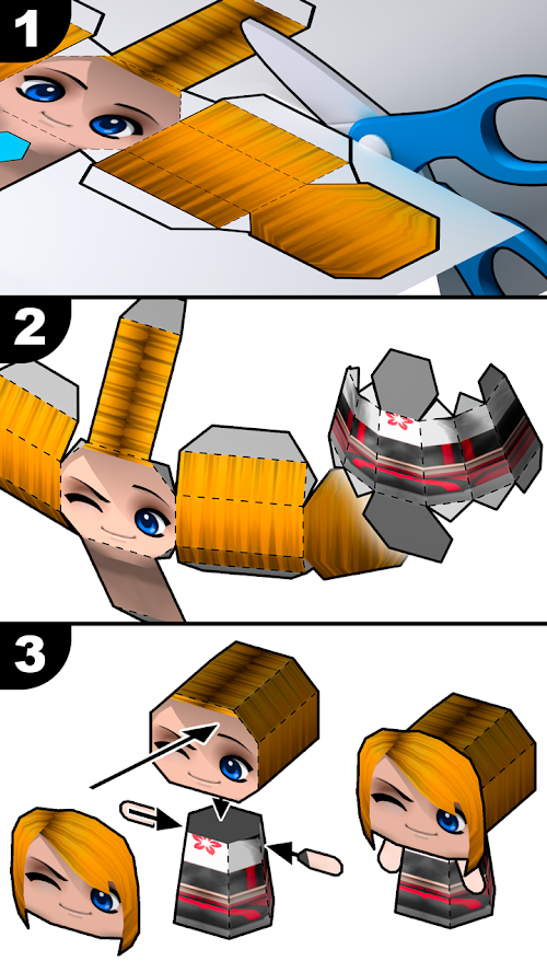 ★★★★★ PaperChibi is an amazing new application for personalized avatar paper crafts. Check out our video to see how it works: http://paperchibi.com/video Make cute chibi avatars; change their clothes, hairstyle, eyes, and lots more. Then print and make real 3D papercraft avatars. Create chibi friends and family. Make a t-rex or a car for your chibi to ride in.