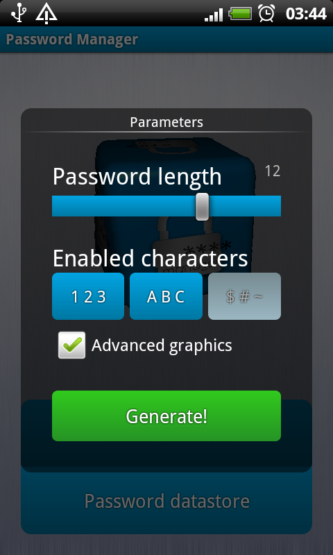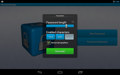 Try the Password Manager and enjoy a comfortable and secure way of handling your passwords! The intuitive 3D user interface makes generating randomized passwords a real fun.