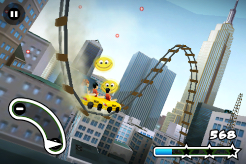 Play 40 action-packed New York City 3D rollercoaster tracks full of steep, sky-scraping peaks, huge drops and gut-wrenching curves! Pull off Extreme Air, Crushing G’s and other insane stunts as you overcome challenging breakable tracks, loop-the-loops, chasm jumps and more! Speed increases your excitement meter, multiplying your score, but even small jolts are enough to send carts hurtling down to the streets below!