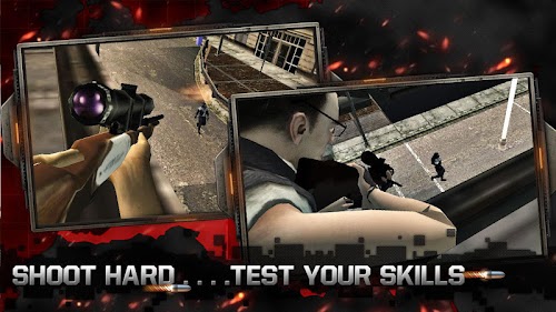 Simply AIM and SHOOT the bad guys out there. Show no mercy to kill all in this amazing game - 3D SNIPER ASSASSIN – FREE. Eliminate the mob of enemies, full of passion that you can’t resist, can’t stop shooting until you kill them all. Be one of the Best Sniper with cool head, who analyze the things faster, aggressive and most important – Accurate shooter. Pickup weapons of your own choice to complete the missions, different types of tasks, do not hesitate to track and kill all criminals down the street. But be careful, even they can put you down with their weapons. Play this exciting and thrilling game to experience the real 3D Graphics and environment throughout the game play. Zoom in & out for better vision and to sight your target, read the instructions carefully and complete your missions accordingly with ease.