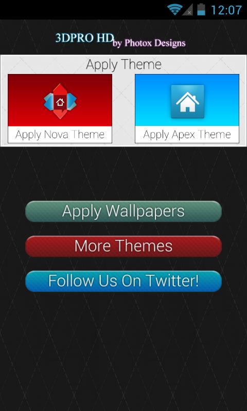 Open 3DPRO HD App after installation and apply Apex Theme if you are using Apex Launcher or Apply Nova Theme if you are using Nova Launcher.