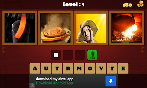 ★★★★★ 4 Pics 1 Word game ★★★★★ is an interesting free puzzle game where you are shown 4 pics and you have to guess the 1 word that is common to all the four of them OR you have to guess that one word that connects the 4 pics in some way or the other.