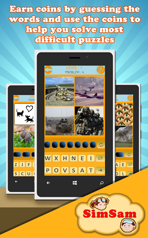 • Earn coins by guessing the words and use the coins to help you solve most difficult puzzles