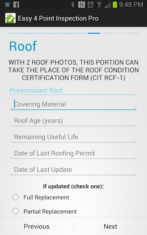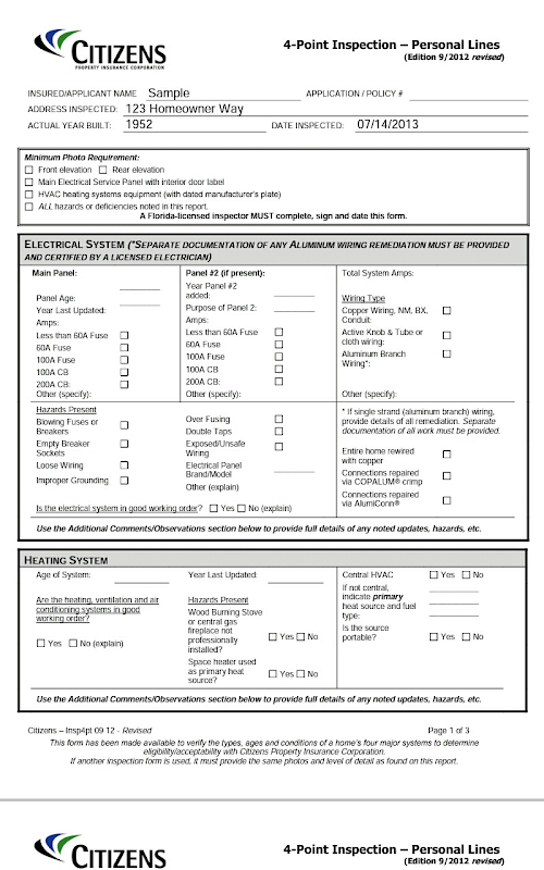 Citizens 4 Point Inspection Pro is designed to save you time in the field conducting your 4 Point Inspections. Citizens 4 Point Inspection Pro creates the 4 Point Inspection on the official 2012 Citizens 4 Point Inspection form in PDF format. It also allows you to easily add your photos from a local file or use your android camera to add photos and attach the required photo sheet at the back of the form.