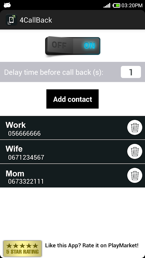 Enough to add necessary numbers to the list of numbers and when you will have incoming call from one of them simply reject the call - the application will call this number.