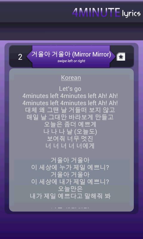If you are looking to download other versions of 4Minute Lyrics Android App, We have 1 version in our database. Please select one of them below to download.