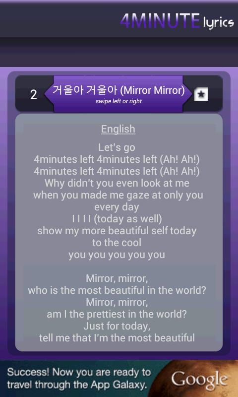 This version of 4Minute Lyrics Android App comes with one universal variant which will work on all the Android devices.