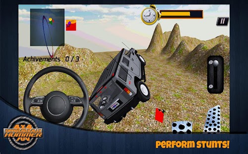 Awesome hills and several levels keeps you get stabbing. Exonerate outburst and take the hummer SUV parking beyond the groove. Perform snap rolls and sharp 360 burnouts. Maneuver through hills and perform stunts. Become the real off road King and rule the 3D world.