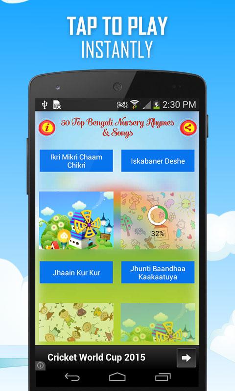This version of 50 Top Bengali Rhymes & Songs Android App comes with one universal variant which will work on all the Android devices.