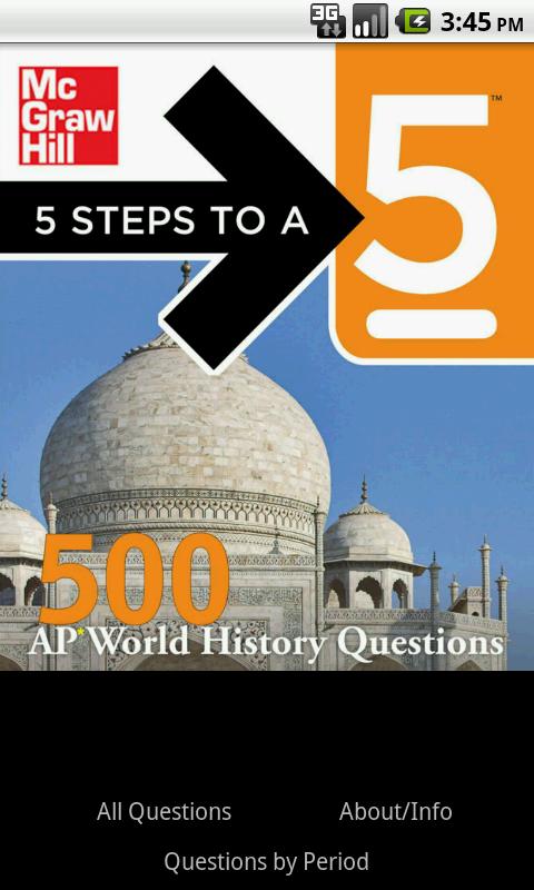 Add McGraw-Hill's 500 AP World History app to your exam prep toolbox and kick your studying into high gear. Whether you've been studying for months or are just beginning to prepare, this Advanced Placement World History app will get you to where you need to be. With 500 separate questions and detailed answers based closely on the material in the current AP World History exam, this app is a comprehensive tool designed to test your current knowledge and master any unfamiliar material.
