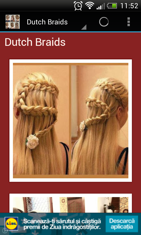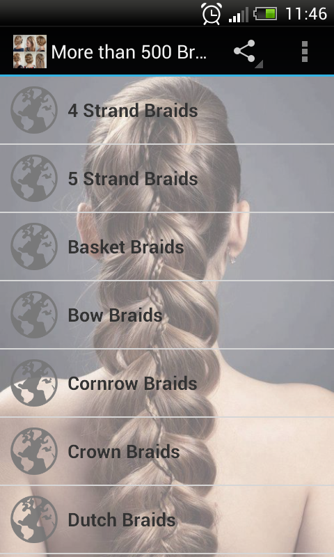 This app provides you a large image gallery with different types of Braid ideas. These pictures where carefully chosen from the google search engine results and gathered in this app. This collection will be regularly filled with new versions of braid weavings picture.