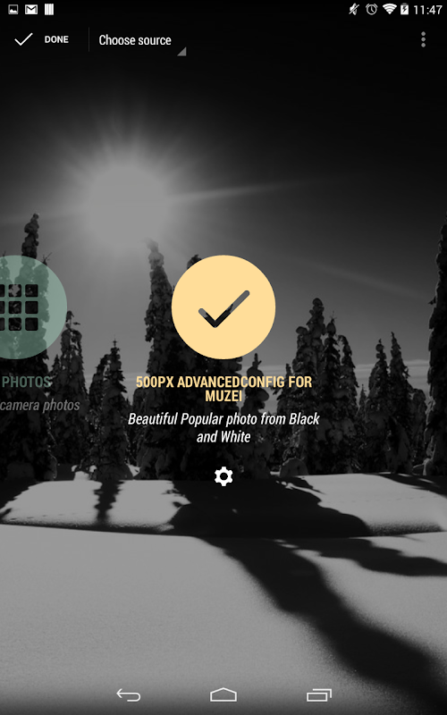 - Select "500px AdvancedConfig For Muzei" as your source