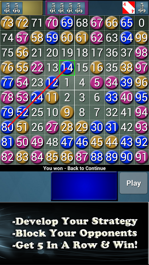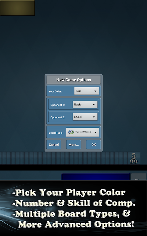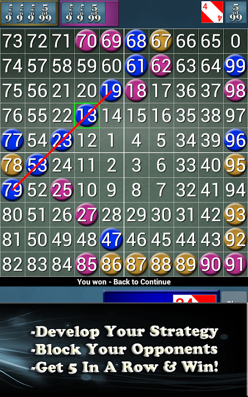 You will find this new twist easy to learn, challenging to master and highly addictive to play. If you have played other five in a row games like Gomoku, Renju, Gobang, Five Straight (5ive Straight) or even Tic Tac Toe, 5of99 is the perfect next game to bring a new challenge to you.