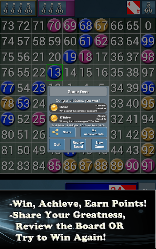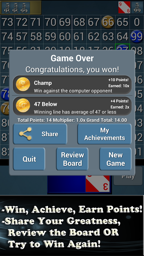 -Share Your Greatness, Review the Board OR Try to Win Again!