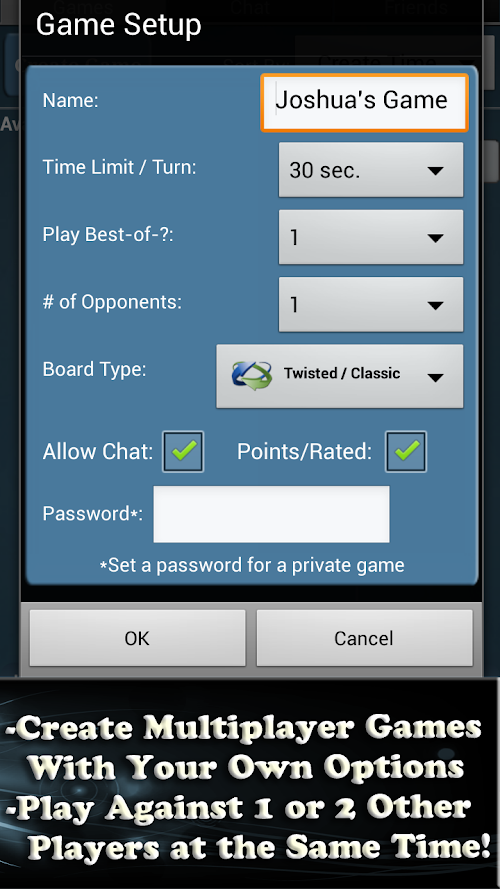 Similar to Gomoku or Renju (sometimes called "Go", gomokunarabe, omok, Pente or "Go Bang"), 5of99 takes it to a new level of challenging fun.