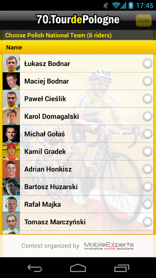 You can also find a prize competition (Chose Your National Team) in this application. Predict which riders will perform best and win precious prizes!