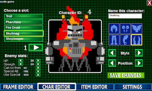 Snap together your own classic rpg within minutes! Put together your own enemies and NPC's using 200 body parts and over 1 BILLION possible character combinations! Build your own customized weapons and weapon shops; draw your own overworld maps using tiles for grass, snow, sand, stone and lava; and interlink as many overworld maps as you want for almost unlimited gameplay possibilities!