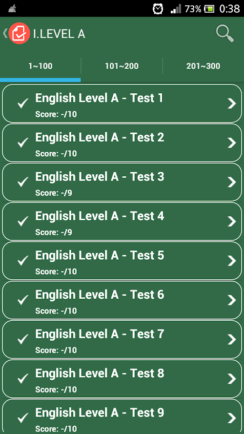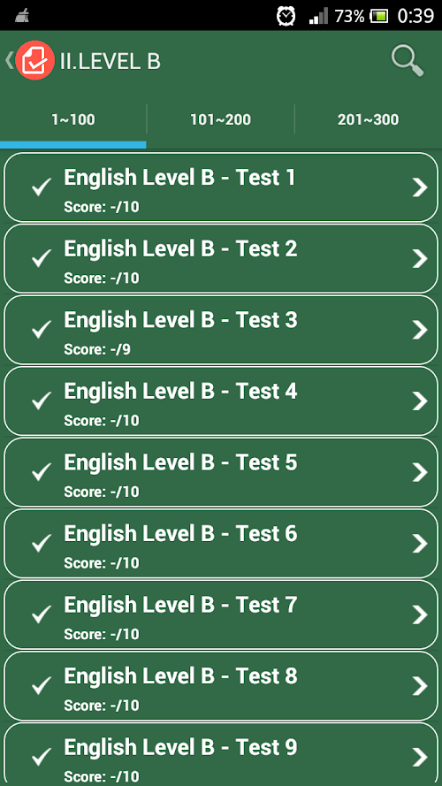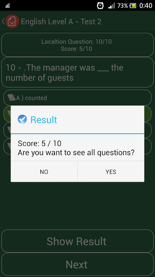 English Level Test application with over 8800 questions and user interface design.