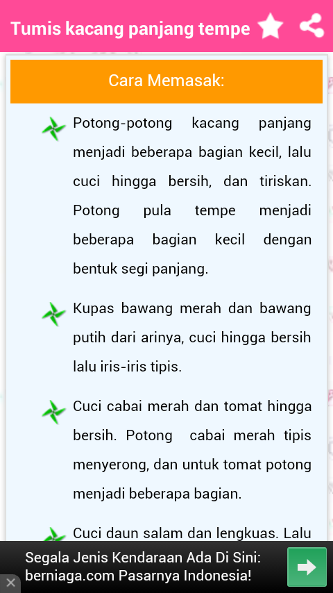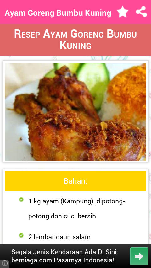Berharap aplikasi ini bermanfaat :) In the application of this simple collection of recipes there are many recipes that are simple and simple to families from around the country. Collection of simple recipes contained in this application include;