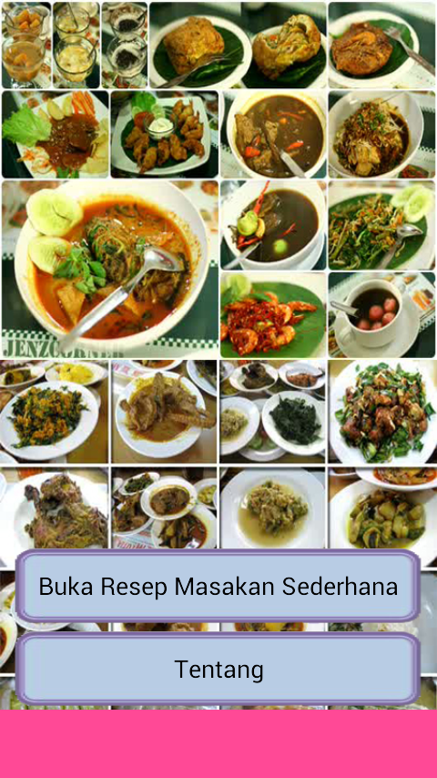 Dalam aplikasi kumpulan resep masakan sederhana ini terdapat banyak sekali resep masakan yang sederhana dan simpel untuk keluarga dari seluruh nusantara. Kumpulan resep masakan sederhana yang terdapat dalam aplikasi ini antara lain;